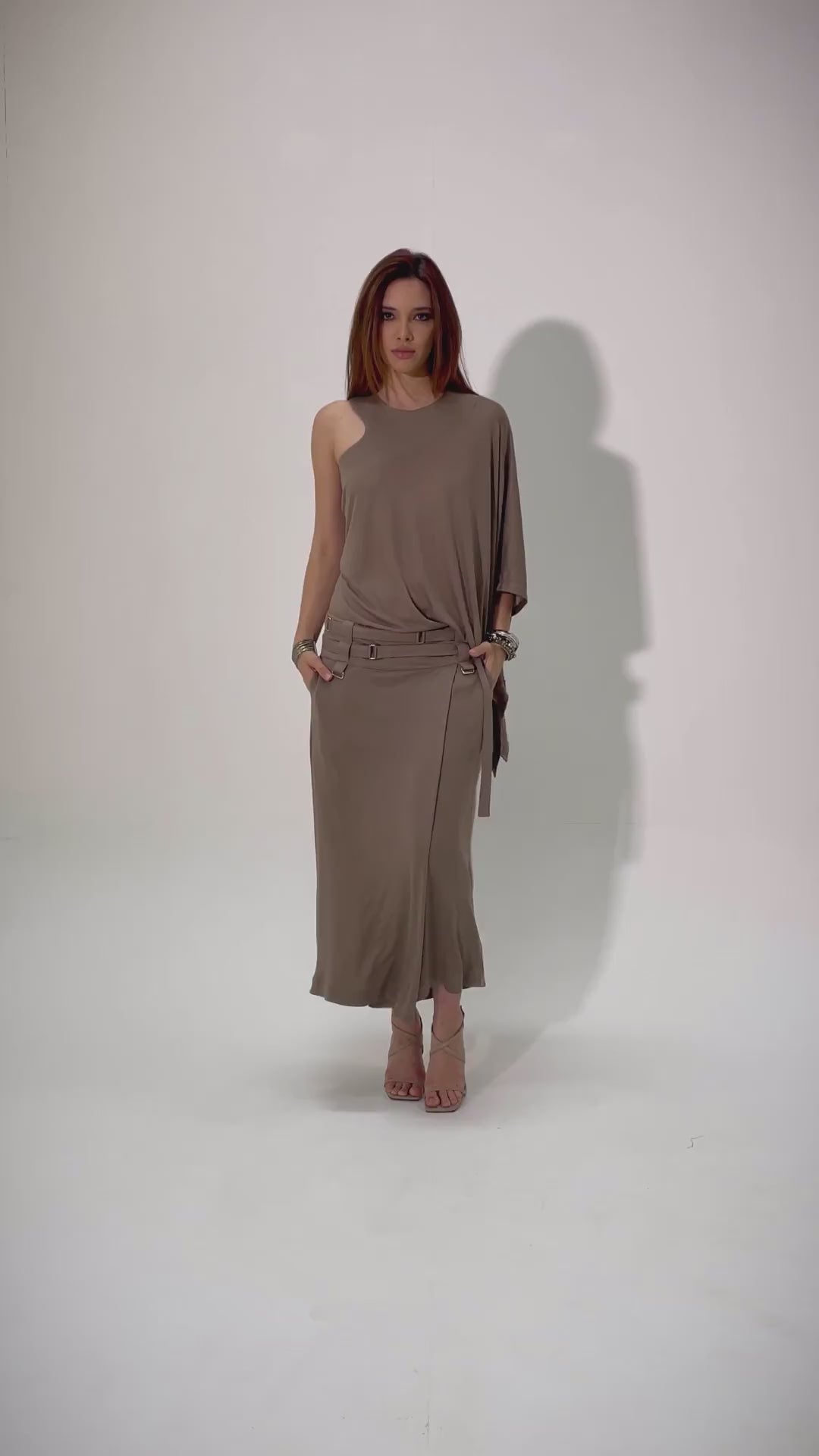 • Design Elegante: A modelagem assimétrica com uma única manga cria um visual marcante e contemporâneo, proporcionando um toque de sofisticação e exclusividade.