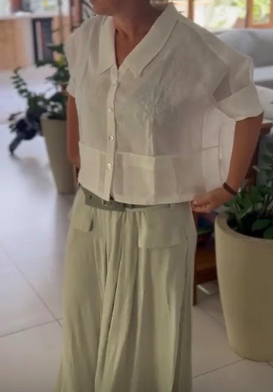 A Camisa Ipanema traduz a essência do verão sofisticado: leve, natural e elegante sem esforço. Confeccionada em linho puro, ela traz frescor e sofisticação em cada detalhe. Sua modelagem ampla valoriza a silhueta com conforto, enquanto a gola pontuda e os botões de madrepérola acrescentam um toque de refinamento atemporal.